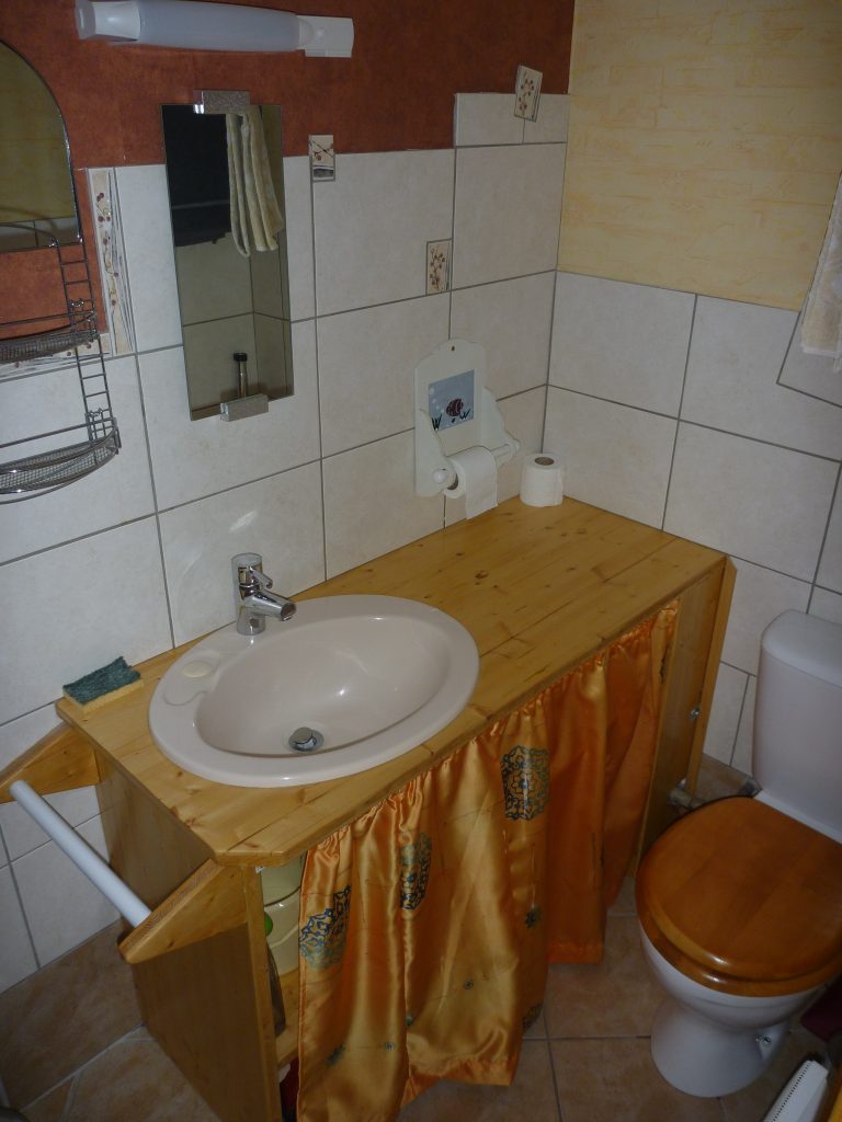 - une chambre, une salle de bain (douche, lavabo) et un WC
