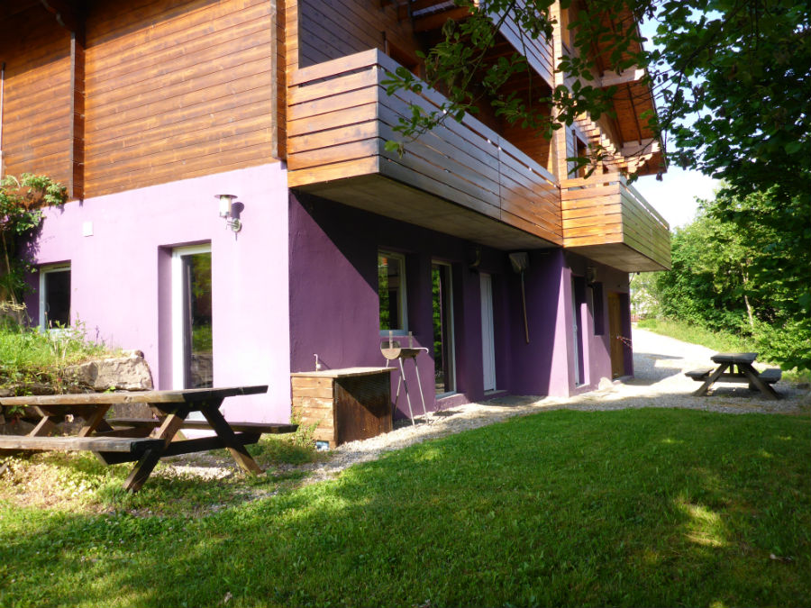 Rez-de-chaussée coté aval, de plein pied, entrée nord. Terrasse coté Est